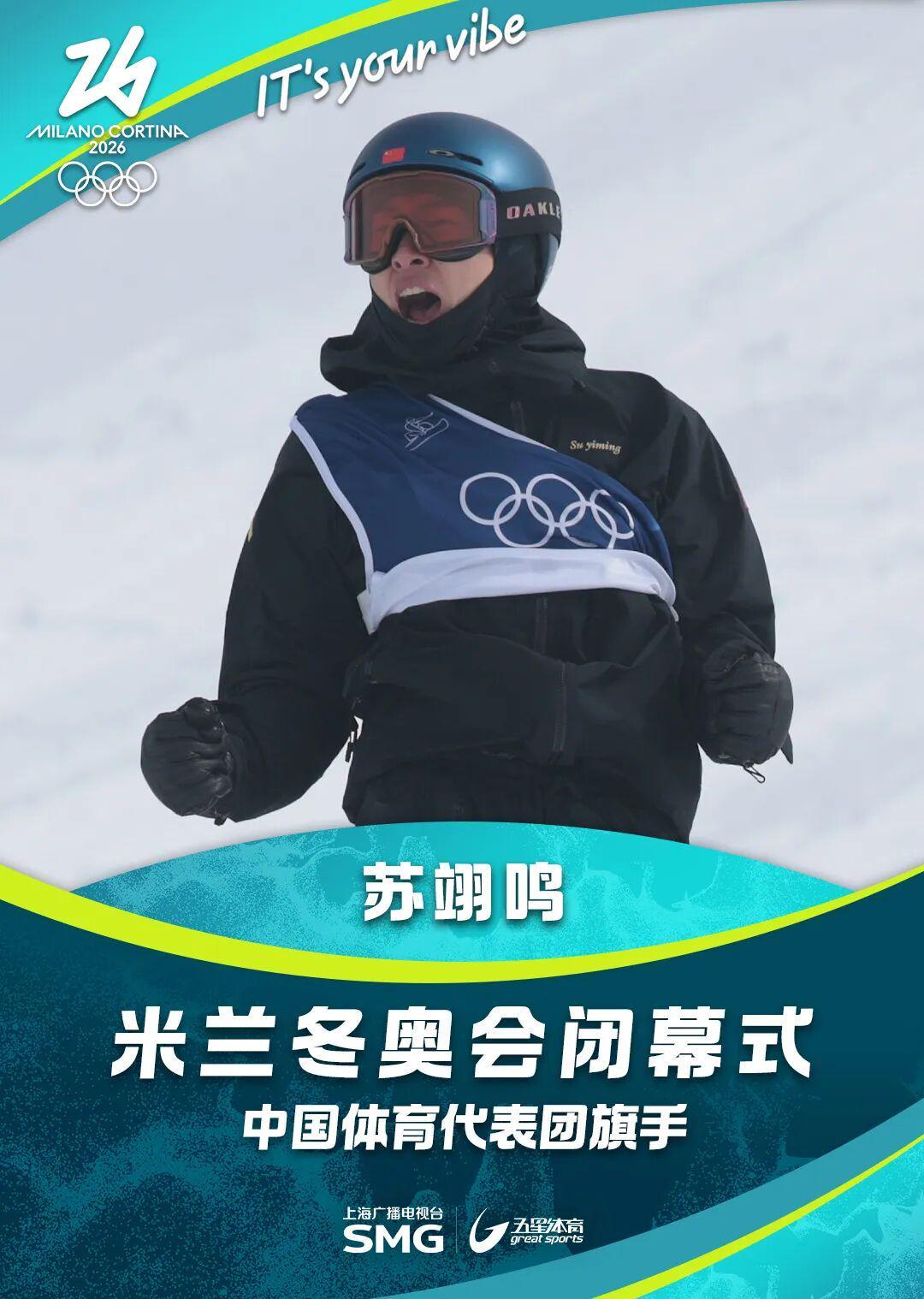 北京时间2月22日早晨,米兰-科尔蒂纳冬奥会结束了开幕式后的第15个比赛日的争夺,就在今天凌晨,官方确认苏翊鸣将会在本届冬奥会闭幕式上,担任中国体育代表团旗手。
