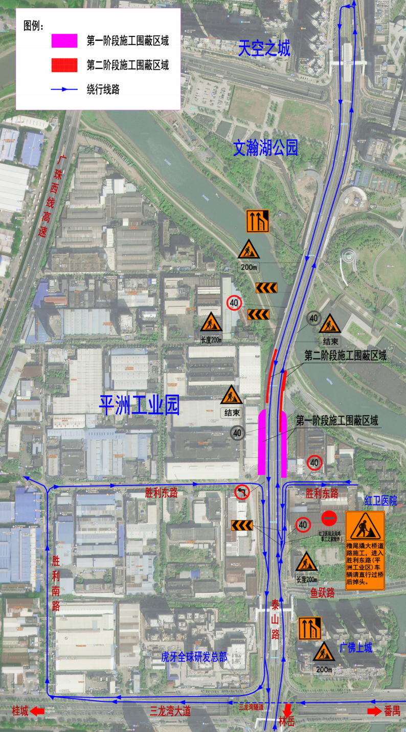 2026年3月13日至2027年12月25日,南海桂城泰山路橹尾撬大桥将进行围蔽施工, 请沿线单位、居民和过往车辆提前安排好出行路线,按交通指示及标志牌等减速慢行通过施工路段。